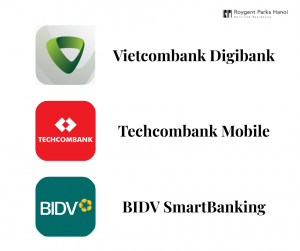 - 銀行アプリ: Vietcombank Digibank、Techcombank Mobile、BIDV SmartBanking(英語対応あり)。